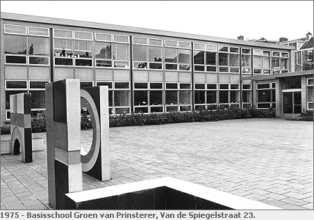 Verscholen achter de huizen in de Van de Spiegelstraat ligt Christelijke basisschool De Spiegel, voorheen de Groen van Prinstererschool, Van de Spiegelstraat 23.