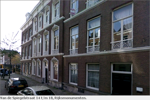 Van der Spiegelstraat 14, 16, 18 gebouwd door architect C.M. van Vianen in 1881. Bouwstijl: eclecticisme. foto Gemeentelijk monument