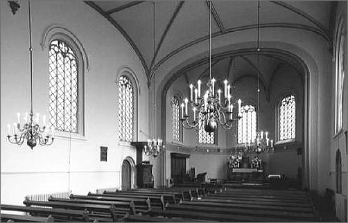1e de Riemerstraat 1. De Katholiek Apostolische kerk uit 1868, in eclectische/neo-romaanse stijl, is ontworpen door C.W. van Capellen.