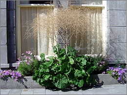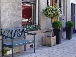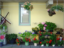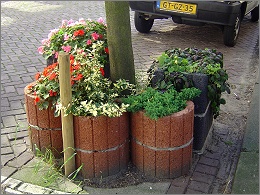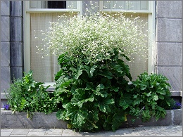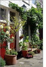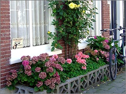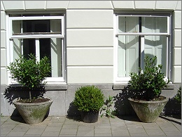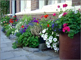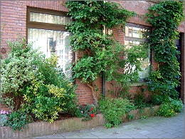 Is de stoep te smal voor een geveltuin, gebruik dan plantenbakken, potten of hangbakken. Zo heeft u toch wat groen aan de gevel. Of verwijder één of twee tegels en plant een klimplant. Klimplanten nemen meestal niet veel plaats in, er moet echter wel genoeg muurruimte zijn om ze te kunnen leiden. En houd er rekening mee dat snelle groeiers zoals Bruidssluier, heel regelmatig gesnoeid moeten worden om de doorgang vrij te houden. Rozen vormen vooral bloemen aan horizontaal geleide takken, en de Vuurdoorn laat zich uitstekend snoeien zodat hij mooi vlak tegen de muur groeit en voorbijgangers geen takken met de venijnige scherpe stekels in hun gezicht krijgen. Clematissen heb je in heel veel kleuren en soorten, vroeg- en laatbloeiers, klein- of grootbloemig.
